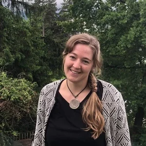 For the painting “Bloom here and now” I started with an abstract background created with liquid paint that I let drip down. I then built up the picture, layer by layer, starting with the landscape in the background and then the suitcase. Finally I added the flowers and the last details for the suitcase.